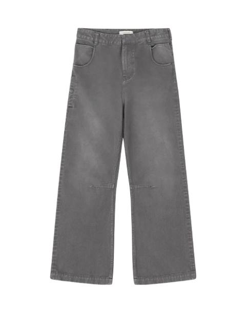 - 100% cotton Japanese denim - the wash of this denim is intentionally made to look dirty - 13.75oz - Side and back pockets - Ykk metal zip and hidden button closure - Inner leg dart - Wide straight leg - Unisex fit