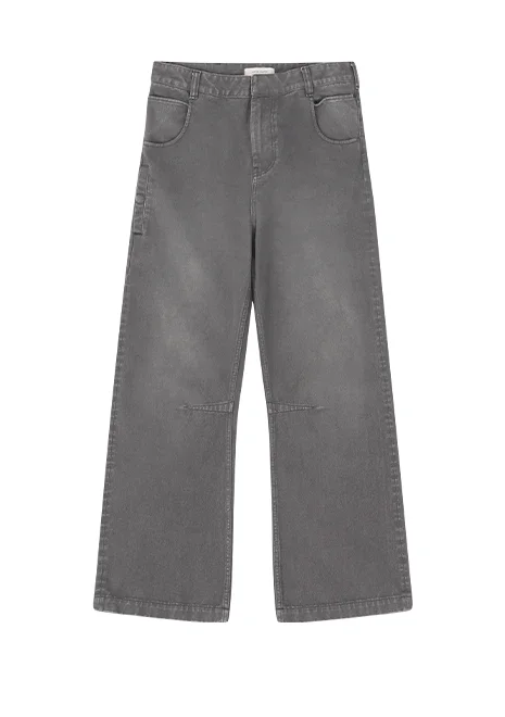 - 100% cotton Japanese denim - 13.75oz - Side and back pockets - Ykk metal zip and hidden button closure - Inner leg dart - Wide straight leg - Unisex fit