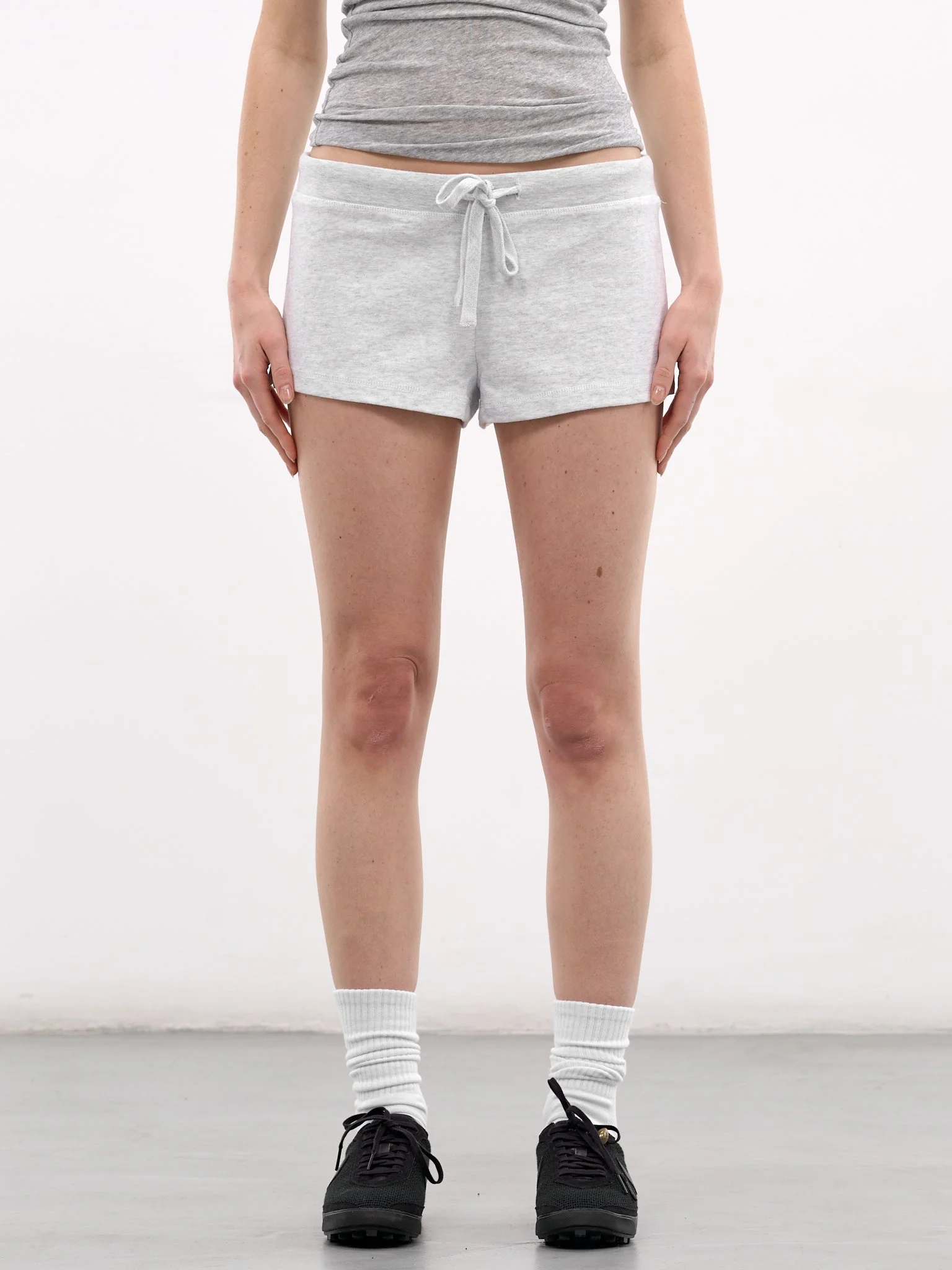 Shorts in heather gray constructed from lightweight cotton fleece with a drawstring waist. Featuring: • Relaxed fit • Lightweight cotton fleece construction • Adjustable drawstring waistband • Micro length • Made in China • 100% Cotton • Standard sizing Model is 5'8" wearing size S. Bust: 32” Waist: 25” Hips: 35”