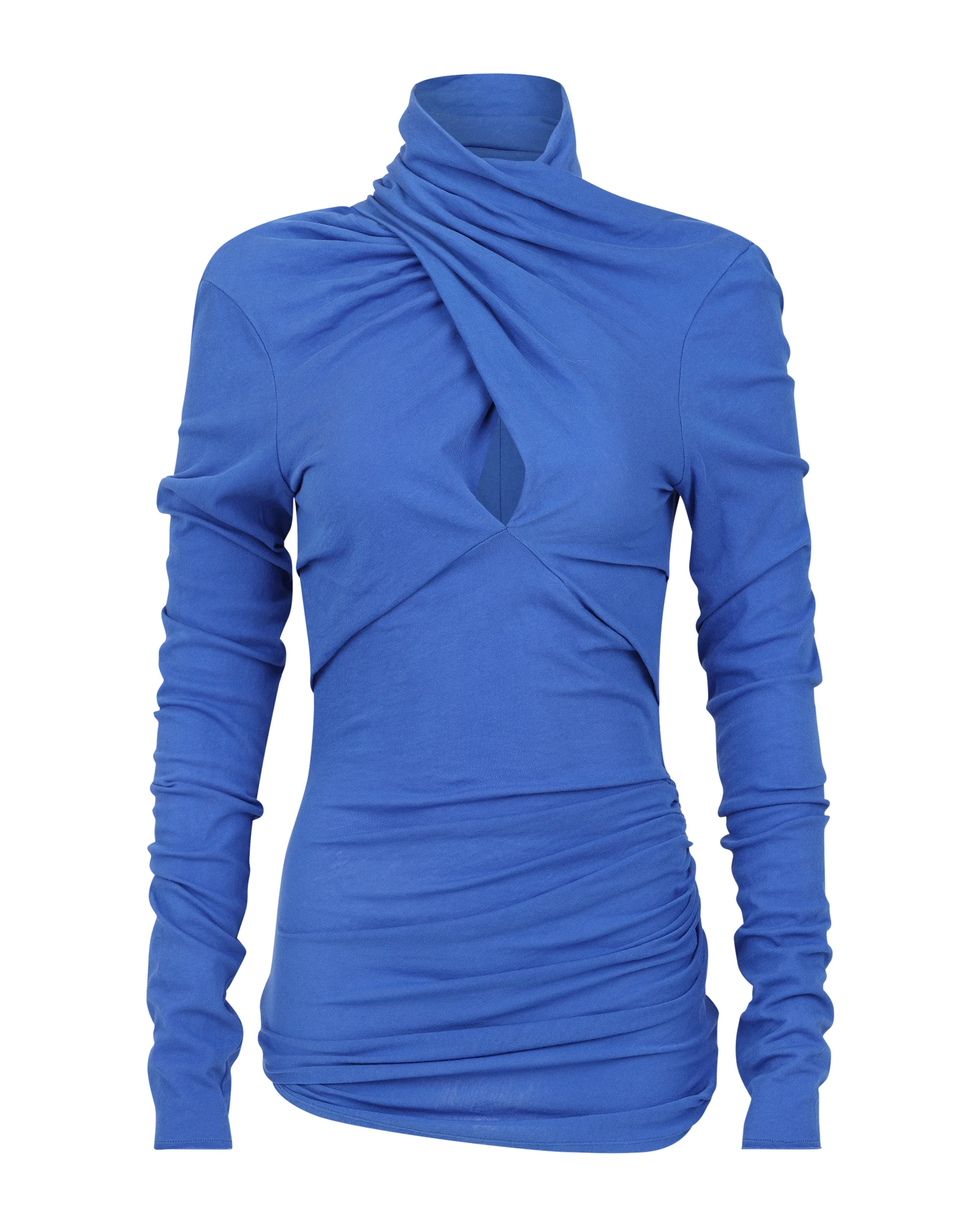 - 94% COTTON 6% ELASTANE - DRAPED TOP - PLEAT AND GATHERING DETAILING - FORM FITTED - HIGH NECK