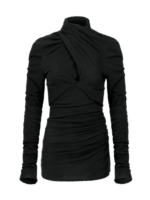 - 94% COTTON 6% ELASTANE - DRAPED TOP - PLEATAND GATHERING DETAILING - FORM FITTED - HIGH NECK