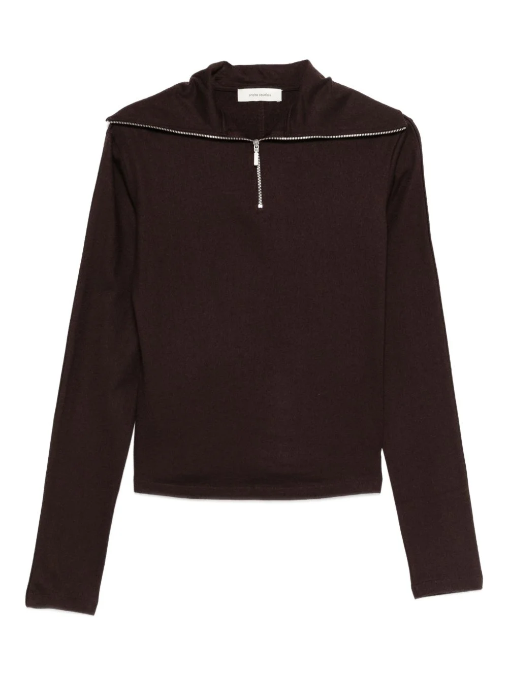 half-zip sweatshirt Highlights - Brown - Zip fastening - Long sleeves - High neck - Fitted - Tonal stitching Imported Composition Wool 100% SIZE & FIT Model measurements Height 5 ft 8 in(1.73 m) Bust/Chest 29.92 in(76 cm) Hips 33.07 in(84 cm) Waist 23.22 in(59 cm) Washing instructions Dry Clean Only