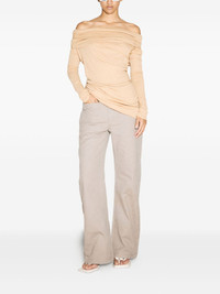 cotton flared trousers Highlights - Beige - Concealed front fastening - Belt loops - Two front patch pockets - Two rear welt pockets Imported Composition Cotton 100% Washing instructions Machine Wash