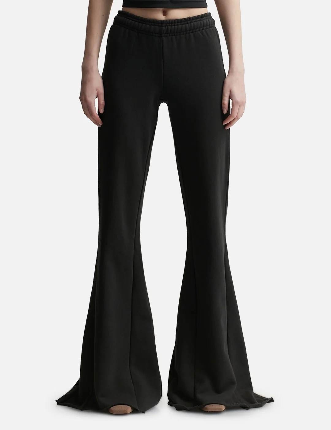 - Entire Studios - Heavy Flare Sweatpants - Enzyme washed organic cotton fabric - Elasticated waistband - One rear patch pocket - Flared silhouette - Raw cut bottom hem - Due to the special wash process colors may slightly vary for each product - Color: Soot - Material: 100% Organic Cotton - See more Pants and Clothing SIZING - Model wears size XS - Model measures: Height 179cm, Chest 32”/81cm, Waist 23’’/58.42cm, Hip 35’’/88.9cm