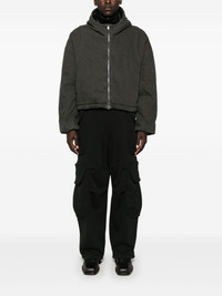 Heavy Gocar trousers Highlights - Black - Organic cotton - Jersey texture - Elasticated waistband with internal drawstring - Four cargo pockets - Fleece lining - Drawstring hem - When buying this unisex item, keep in mind that it is graded in standard men's sizing. Made in United Kingdom Composition Organic Cotton 100% SIZE & FIT Model measurements Height 5 ft 10 in(1.78 m) Bust/Chest 33.85 in(86 cm) Hips 36.61 in(93 cm) Waist 26.77 in(68 cm) FittingInformation This piece is unisex and is designed with a wide-leg, whether you usually select women's or men's sizes The internal drawstring at the hem allows for fitted preferences at the ankle Made from a midweight non-stretch fabric, this piece offers minimal elasticity when worn