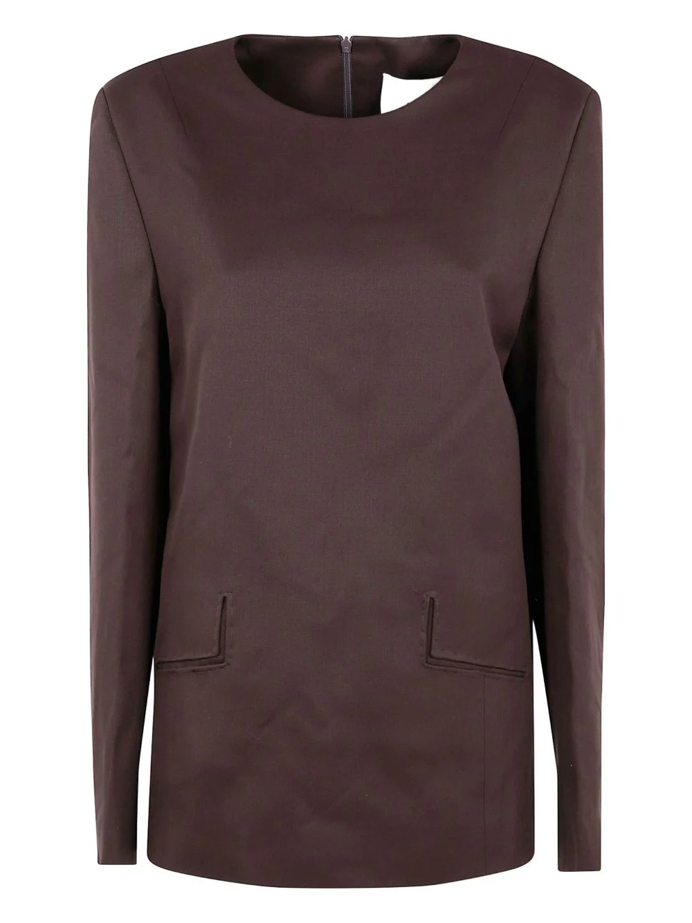 cut-out pocket long-sleeve top Highlights - Tobacco - Wool - Round neck - Long sleeves - Two pockets - Rear zip fastening Imported Composition Wool 100% Washing instructions Read Manufacturer Guidelines