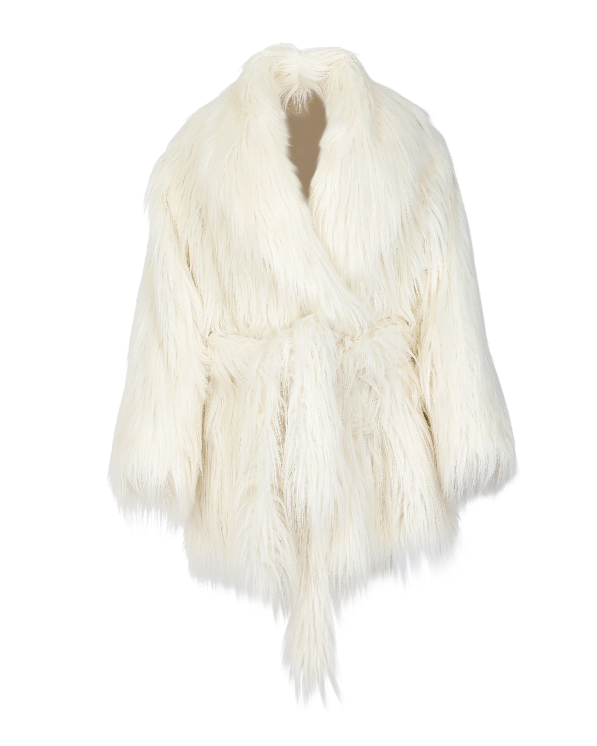 - FAUX FUR - 64% ACRYLIC 36% POLYESTER - CROPPED - WAIST TIE - FULLY LINED - WOMENES FIT