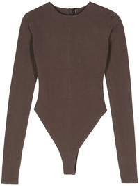 round-neck jersey bodysuit Highlights - Cedar brown - Organic cotton blend - Jersey texture - Round neck - Long sleeves - Concealed rear zip fastening - Just a reminder that this piece must be tried on over your own garments. Imported Composition Organic Cotton 90%, Elastane 10% SIZE & FIT FittingInformation Designed for a close fit throughout Made from a midweight stretch fabric, this piece offers elasticity and flexibility when worn