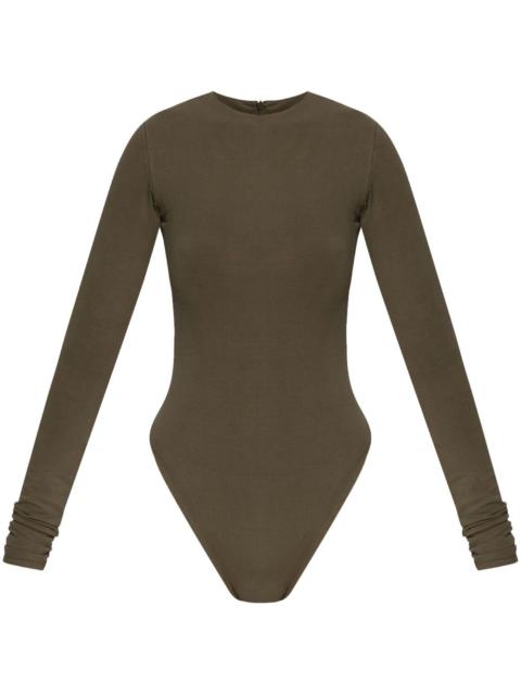 long-sleeve bodysuit Highlights - Olive green - Concealed rear zip fastening - Crew neck - Just a reminder that this piece must be tried on over your own garments. Imported Composition Cotton 90%, Elastane 10% SIZE & FIT FittingInformation Designed for a close fit throughout Made from a midweight stretch fabric, this piece offers elasticity and flexibility when worn