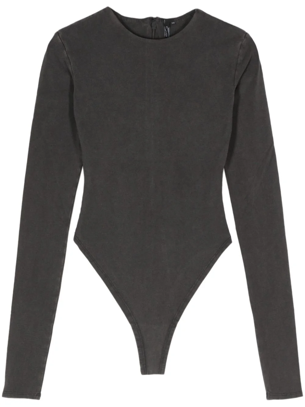 round-neck jersey bodysuit Highlights - Black - Faded effect - Organic cotton blend - Jersey texture - Round neck - Long sleeves - Concealed rear zip fastening - Just a reminder that this piece must be tried on over your own garments. Imported Composition Organic Cotton 90%, Elastane 10% SIZE & FIT FittingInformation Designed for a close fit throughout Made from a midweight stretch fabric, this piece offers elasticity and flexibility when worn Measurement CHEST 29.92 in(76 cm) SLEEVE LENGTH 26.37 in(67 cm) HIPS 29.13 in(74 cm) LENGTH 28.74 in(73 cm) WAIST 26.77 in(68 cm)