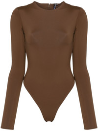 long-sleeved bodysuit Highlights - Chocolate brown - Stretch-design - Round neck - Long sleeves - Internal logo tag - Full lining - Press-stud fastening - Concealed rear hook and zip fastening - Just a reminder that this piece must be tried on over your own garments. Imported Composition Nylon 80%, Elastane 20% SIZE & FIT Model measurements Height 5 ft 10 in(1.77 m) Bust/Chest 33.85 in(86 cm) Hips 37 in(94 cm) Waist 26.37 in(67 cm) FittingInformation Designed for a close fit throughout Made from a midweight stretch fabric, this piece offers elasticity and flexibility when worn This piece fits true to size – take your usual size Washing instructions Machine Wash