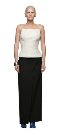 - WOOL SUITING BLEND - SIDE YKK OPEN ENDED ZIPPER - INTERIOR CORSET - SHAPING DARTS - FULLY LINED