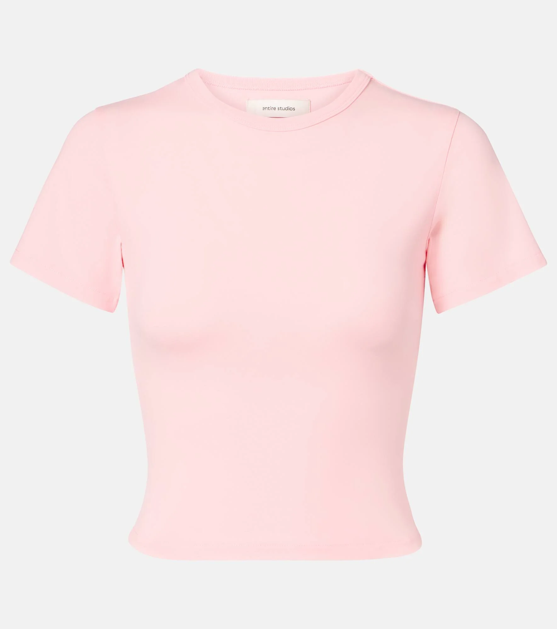 Entire Studios constructs each piece with meticulous attention to detail and longevity in mind. The Micro T-shirt is made from a comfortable cotton-blend jersey with a hint of stretch. Product Details - Material: 95% cotton, 5% elastane - Care instructions: machine wash at 30 degrees - Made in China - Designer color name: Dovepink - Item color: pink - Collar: crewneck - Sleeves: short-sleeved - Item number: P01073250 Size & Fit - True to size - Fitted - Stretchy fabric - Cropped - The model seen in the picture is 178cm-5'10" and wearing a size XS