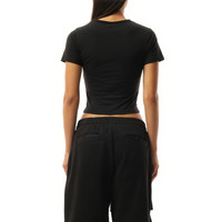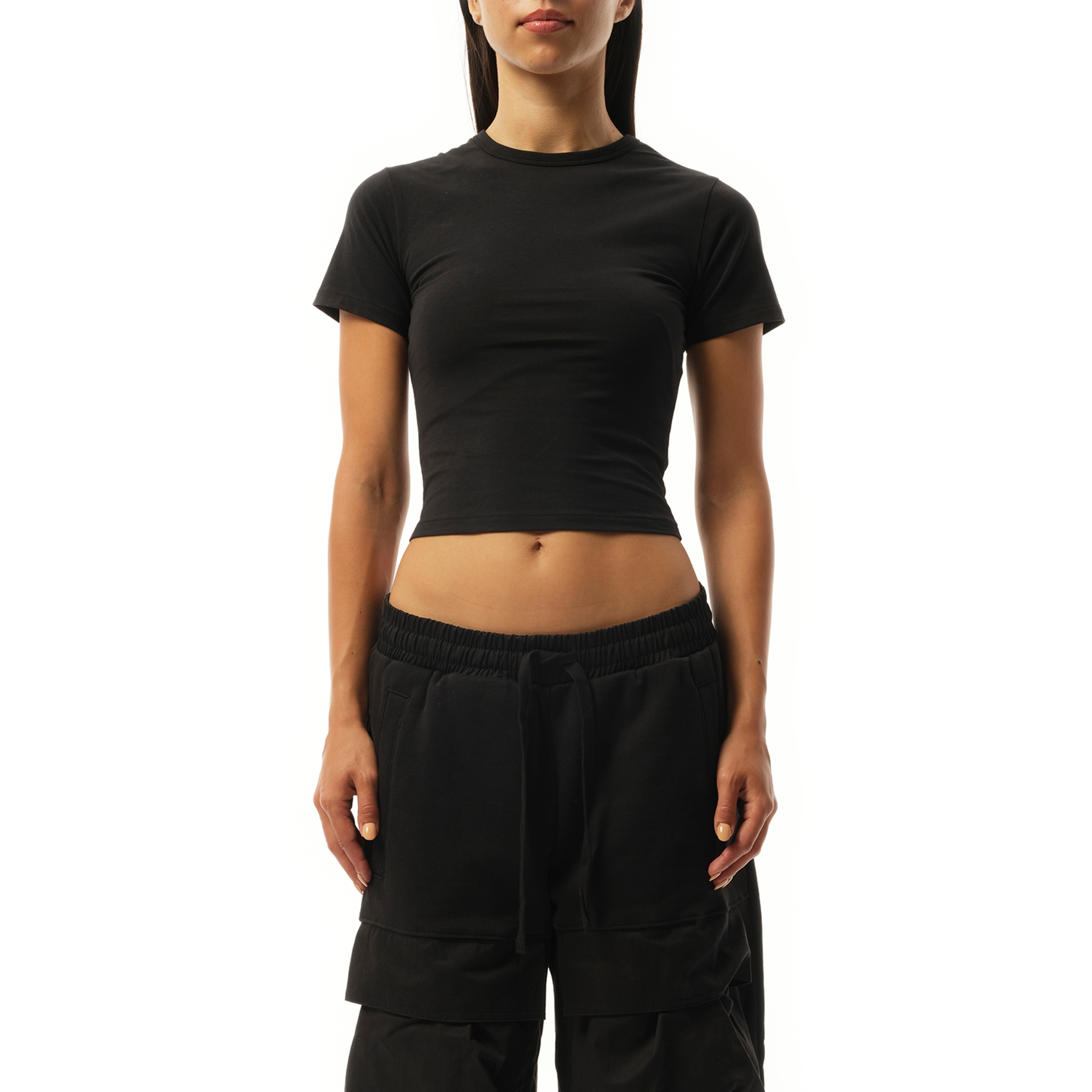 This Micro T-Shirt in Soot is crafted with high quality microfiber fabric for superior comfort and durability. Its lightweight design and moisture-wicking properties make it perfect for any active lifestyle. Its sleek, modern look makes it a versatile addition to any wardrobe. - Composition: 95% Cotton, 5% Elastane - Round neck - Short sleeves - Cropped - Straight hem - Made in China Model is 175 cm and wears size S SKU: ES2251SO