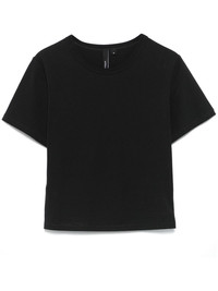 jersey cropped T-shirt Highlights - Black - Organic cotton blend - Jersey texture - Round neck - Short sleeves - Cropped - Straight hem Imported Composition Organic Cotton 95%, Elastane 5% SIZE & FIT Model measurements Height 5 ft 11 in(1.8 m) Bust/Chest 33.07 in(84 cm) Hips 37.4 in(95 cm) Waist 25.19 in(64 cm) FittingInformation Designed for a close fit throughout Made from a midweight stretch fabric, this piece offers elasticity and flexibility when worn This piece fits true to size – take your usual size