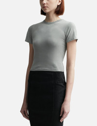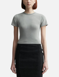 - Entire Studios - Micro T-shirt - Made of a blend of organic cotton and elastane jersey - 165 gsm jersey - Enzyme wash - Crop slim fit - Short sleeves - Round neck - Colors will vary due to the wash process - Color: Rhino - Material: 95% Organic Cotton, 5% Elastane - See more T-Shirts and Clothing SIZING - Model wears size XS - Model measures: Height 177cm, Chest 32”/81cm, Waist 23.5”/59.7cm, Hip 33’’/83.8cm