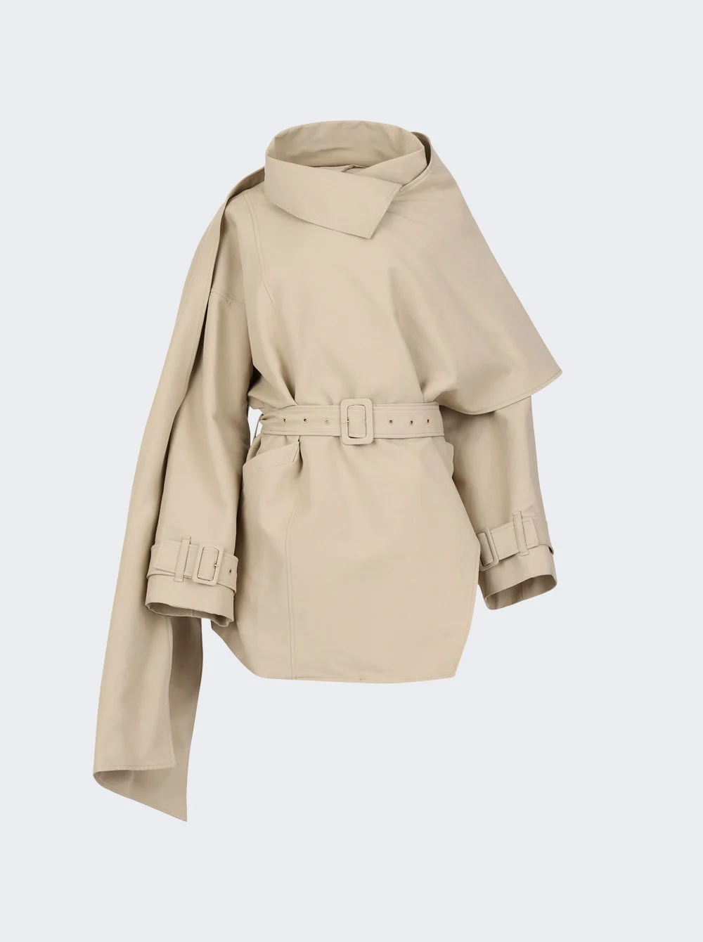 Details - Reimagined trench-style coat - Scarf detailing - Fully lined - Waist and sleeve adjustable belts - Cropped length - Button closure - Care according to label - Material: 100% Cotton Size Information: Vendor Color Code: Brand Style: ESW-W25-1052-SD Designer/Brand: ENTIRE STUDIOS