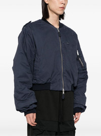 A-4 bomber jacket Highlights - Blue - Cotton - Front two-way zip fastening - Baseball collar - Long sleeves - Cropped - Front zip-fastening pocket - Two front welt pockets - Sleeve zip pocket - Ribbed cuffs and hem - Recycled-polyester filling - Internal zip-fastening pocket - Cotton lining - When buying this unisex item, keep in mind that it is graded in standard men's sizing. Imported Composition Filling: Recycled Polyester 100% Outer: Cotton 100% Lining: Cotton 100% SIZE & FIT Model measurements Height 6 ft 2 in(1.87 m) Bust/Chest 33.07 in(84 cm) Hips 35.43 in(90 cm) Waist 26.77 in(68 cm) Measurement CHEST 51.18 in(130 cm) SLEEVE LENGTH 27.95 in(71 cm) LENGTH 23.62 in(60 cm) WAIST 47.24 in(120 cm) FittingInformation This unisex piece is designed for an oversized fit whether you usually select women's or men's sizes Made from a padded non-stretch fabric, giving it no natural elasticity