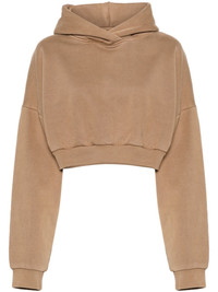 organic-cotton cropped hoodie Highlights - Brown - Organic cotton - Jersey texture - Classic hood - Drop shoulder - Long sleeves - Ribbed cuffs and hem - Cropped - Straight hem - Fleece lining Imported Composition Organic Cotton 100% SIZE & FIT Model measurements Height 5 ft 11 in(1.8 m) Bust/Chest 31.49 in(80 cm) Hips 36.22 in(92 cm) Waist 25.59 in(65 cm) FittingInformation Designed to be unstructured, offering a loose fit throughout Made from a midweight non-stretch fabric, this piece offers minimal elasticity when worn This piece fits true to size – take your usual size