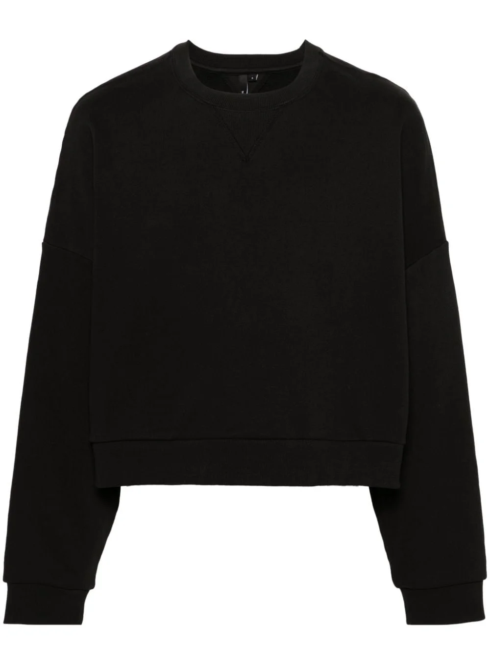 organic-cotton sweatshirt Highlights - Black - Organic cotton - Jersey texture - Ribbed trim - Round neck - Drop shoulder - Long sleeves - Straight hem - Fleece lining - When buying this unisex item, keep in mind that it is graded in standard men's sizing. Imported Composition Organic Cotton 100% SIZE & FIT Model measurements Height 5 ft 11 in(1.8 m) Bust/Chest 33.07 in(84 cm) Hips 37 in(94 cm) Waist 25.59 in(65 cm) Measurement CHEST 59.05 in(150 cm) LENGTH 20.47 in(52 cm) SLEEVE LENGTH 20.07 in(51 cm) Shoulder Width 29.92 in(76 cm) FittingInformation This unisex piece is designed for an oversized fit whether you usually select women's or men's sizes Made from a midweight non-stretch fabric, this piece offers minimal elasticity when worn Washing instructions Machine Wash
