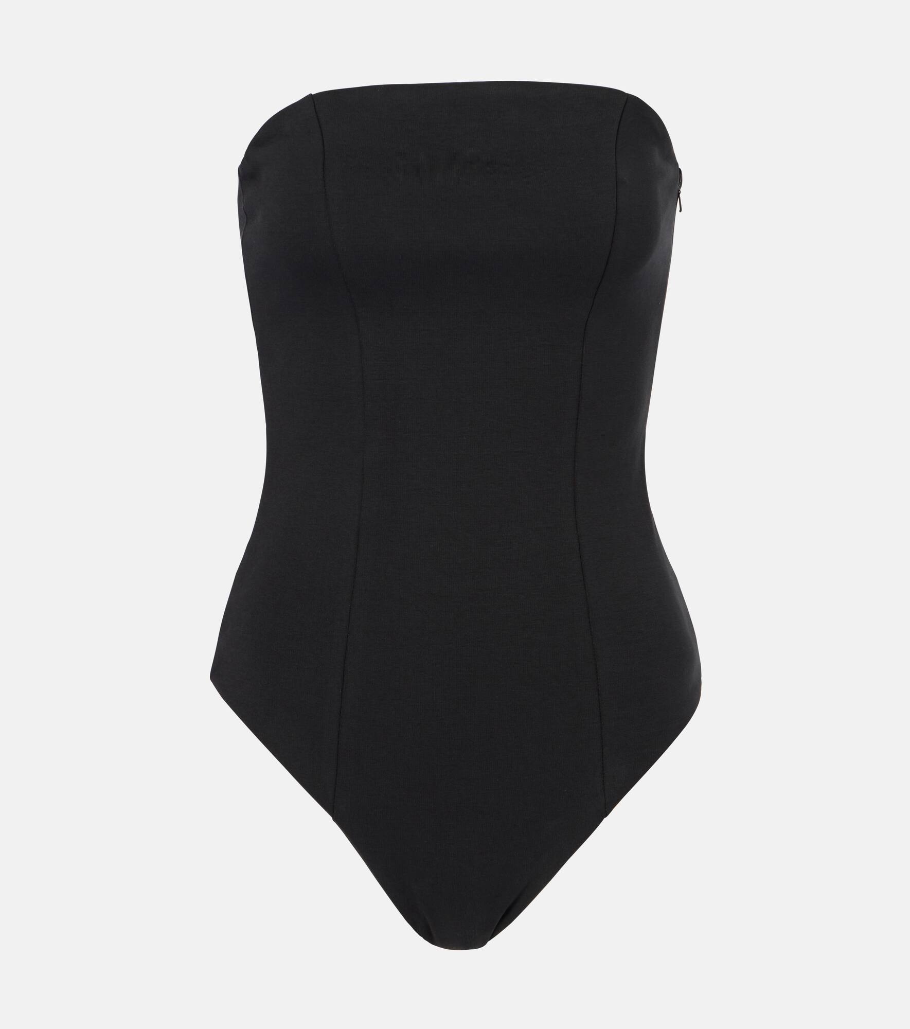 Product Details - Material: 93% cotton, 7% elastane - Care instructions: machine wash at 30 degrees - Made in China - Designer color name: Black - Closure: zipper, snap-button fastenings - Item number: P01020258 Size & Fit - True to size - Strapless - Fitted - Slightly stretchy fabric - High-cut leg - The model seen in the picture is 178cm-5'10" and wearing a size XS
