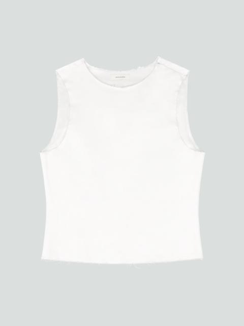 - WOOL SUITING BLEND - BACK SHAPING DARTS - SLEEVELESS TANK - RAW DEATILING - SHOULDER SEAM FORWARD - FULLY LINED