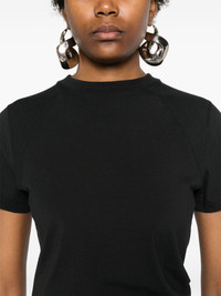 seam-detailed jersey T-shirt Highlights - Black - Organic cotton blend - Jersey texture - Round neck - Short sleeves - Seam detailing - Straight hem Imported Composition Organic Cotton 95%, Elastane 5% SIZE & FIT Model measurements Height 5 ft 11 in(1.8 m) Bust/Chest 32.28 in(82 cm) Hips 36.61 in(93 cm) Waist 24.01 in(61 cm) FittingInformation Designed for a slim fit that sits just away from the body offering a close yet comfortable fit Made from a midweight stretch fabric, this piece offers elasticity and flexibility when worn This piece fits true to size – take your usual size