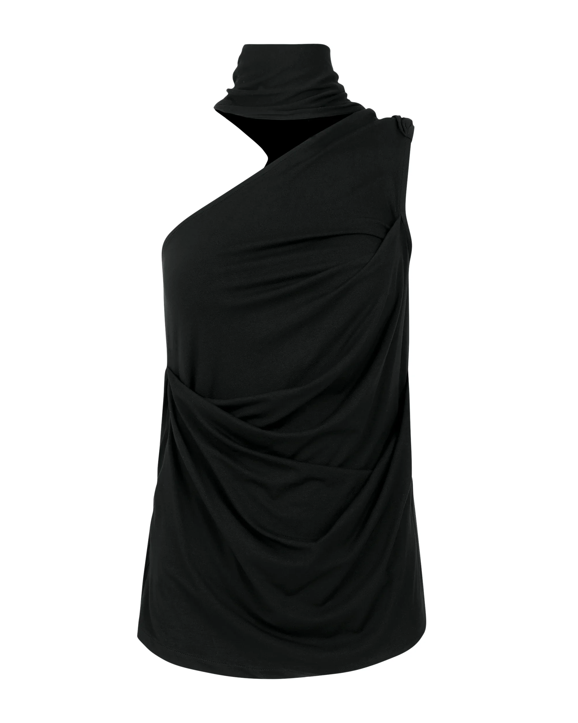 - 92% VISCOSE 8% ELASTANE - HALTER NECK - DRAPE DETAILING - DOUBLE LAYERED - LOOSE FIT