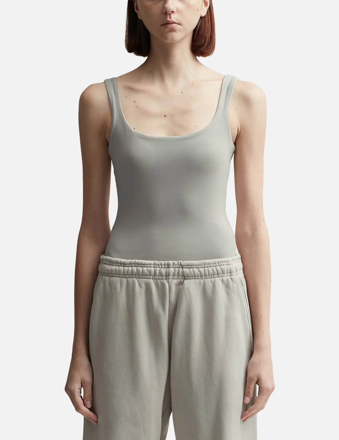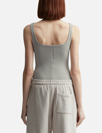 - Entire Studios - Square Neck Bodysuit (Cotton Spandex) - Stretch cotton fabric - Garment dyed - Rear zip closure - Color: Silver Cloud - Material: 90% Cotton, 10% Spandex - See more Bodysuits and Clothing SIZING - Model wears size S - Model measures: Height 177cm, Chest 32"/81cm, Waist 23.5"/59.7cm, Hip 33’’/83.8cm