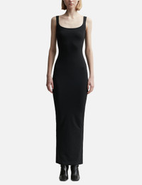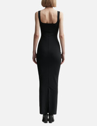 - Entire Studios - Square Neck Maxi Dress - Stretch nylon fabric - Square neckline - Fitted - Rear zip closure - Rear center slit - Color: Soot - Material: 80% Nylon, 20% Elastane - See more Dresses and Clothing SIZING - Model wears size XS - Model measures: Height 179cm, Chest 32”/81cm, Waist 23’’/58.42cm, Hip 35’’/88.9cm