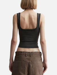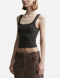 - Entire Studios - Square Neck Tank Top - Stretch cotton fabric - Slim fit - Square neckline - Due to the special wash process colors may slightly vary for each product - Color: Washed Black - Material: 90% Cotton, 10% Elastane - See more Vests and Clothing SIZING - Model wears size XS - Model measures: Height 179cm, Chest 32”/81cm, Waist 23’’/58.42cm, Hip 35’’/88.9cm