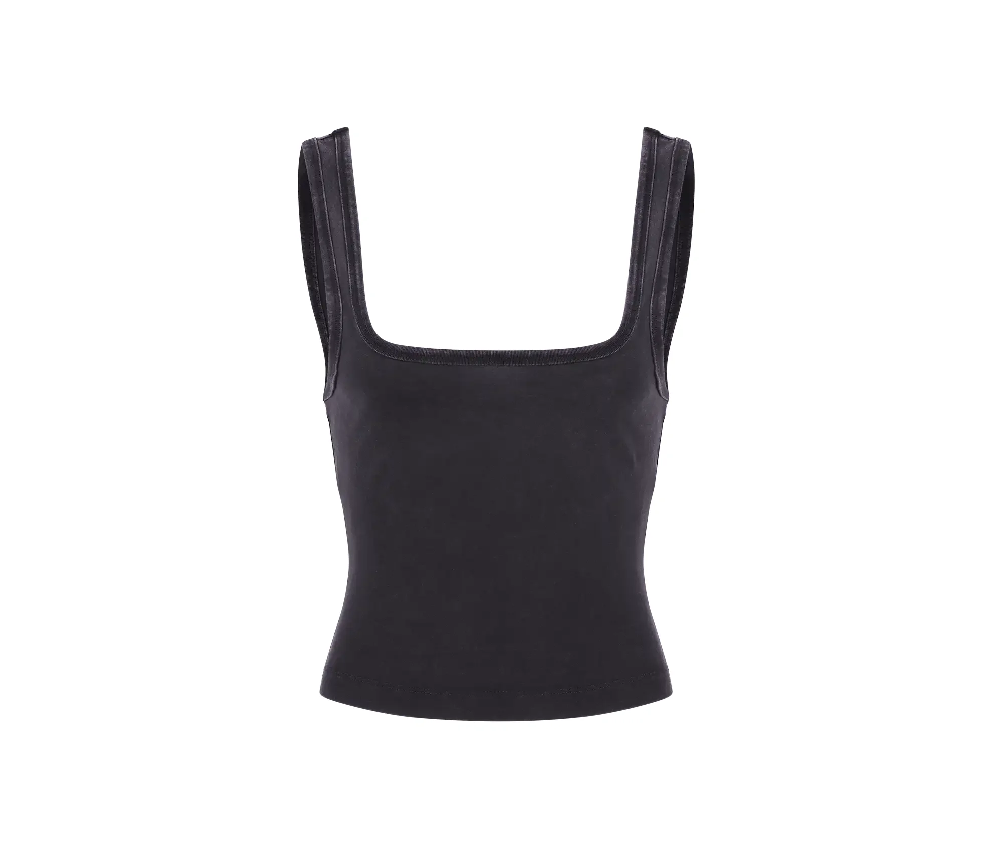 - 90% organic cotton 10% elastane single jersey - An enzyme wash is used which can cause slight variances - 240gsm - Crop, slim fit tank - Square cut neck - Womens sizing