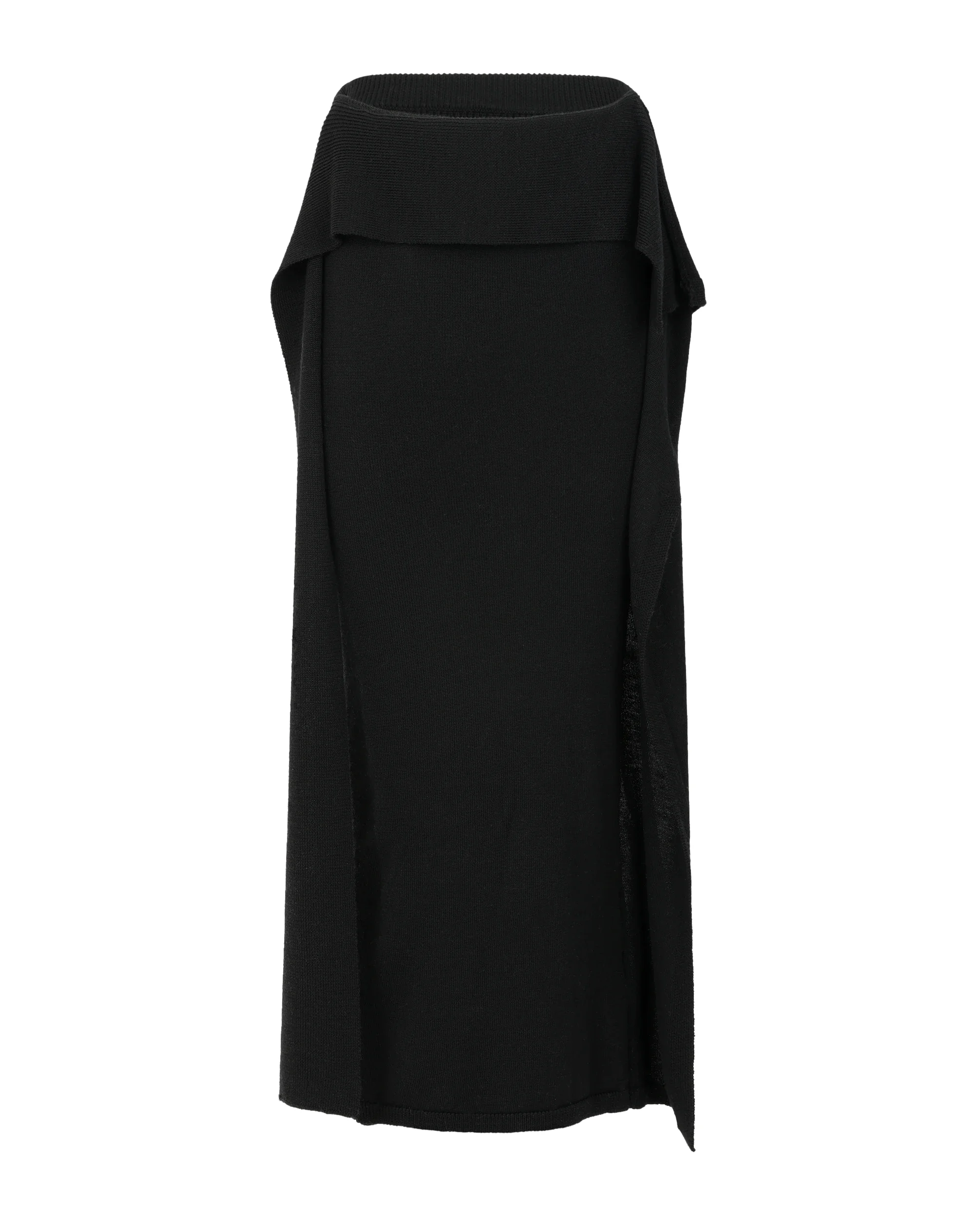 - KNITTED SKIRT - 100% WORSTED MERINO WOOL - WRAP PANELS ON FRONT AND SIDE - RIB KNIT STRUCTURE - STRUCTURE CHANGE IN BACK