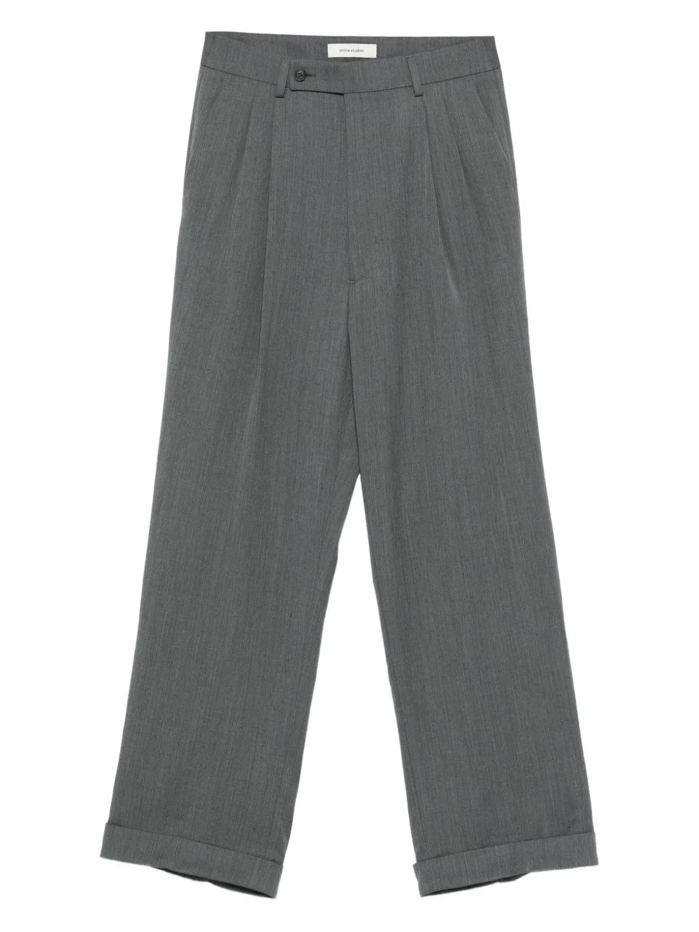 wool trousers Highlights - Grey - Pleated - Button fastening - Concealed fly Imported Composition Wool 100% SIZE & FIT Model measurements Height 5 ft 11 in(1.8 m) Bust/Chest 30.7 in(78 cm) Hips 35.23 in(89.5 cm) Waist 25.19 in(64 cm) Washing instructions Read Manufacturer Guidelines