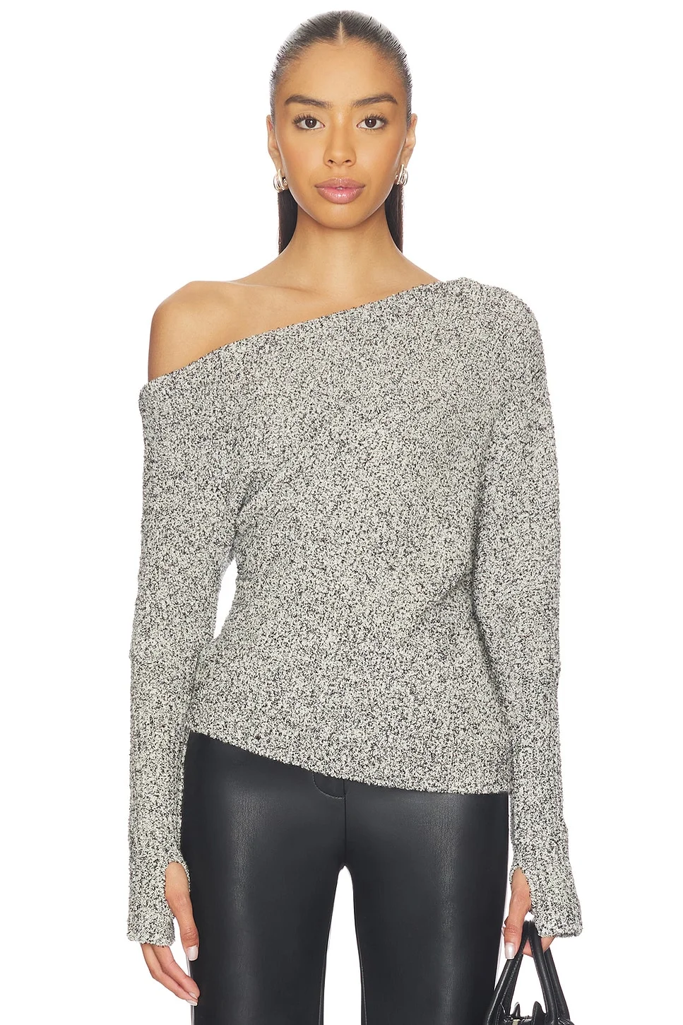 - 55% cotton 30% rayon 15% polyamide - Made in China - Hand wash cold - Pull-on styling - Asymmetric off-shoulder styling - Asymmetric hemline - Thumbhole cuff - Revolve Style No. ENZA-WK232 - Manufacturer Style No. BLK8201
