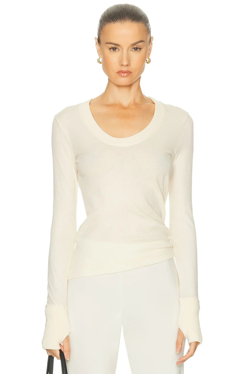 Cashmere Easy Cuffed U Neck Top