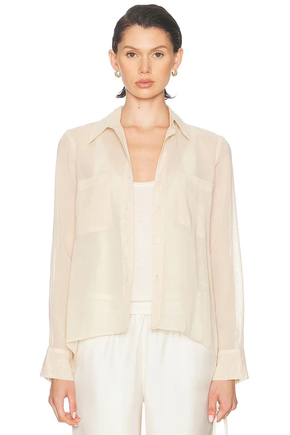 Details - 100% cotton - Hand wash - Front button closure - Breast pouch pockets - Buttoned cuffs - Sheer organza fabric - Garment is intentionally sheer, undergarments will show through. - Please note undergarment not included - Made in US - Our Style No. ENZF-WS980 - Manufacturer Style No. COG30141