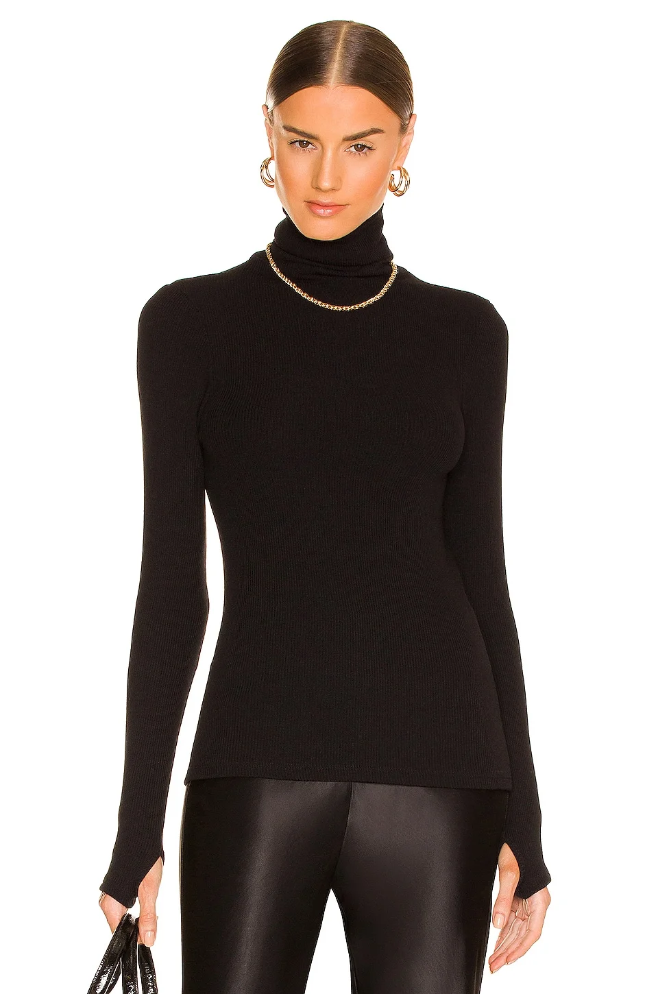 - 49% poly 48% viscose 3% spandex - Made in USA - Hand wash - Foldover neckline - Thumbhole detail - Longline hem - Lightweight ribbed knit fabric - Revolve Style No. ENZA-WS947 - Manufacturer Style No. VK3421