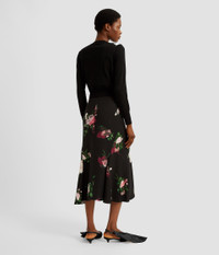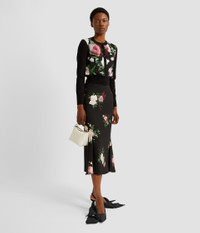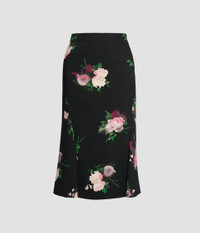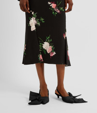 Made from black stretch-cady and decorated with pink roses, this slim-fit skirt features side panels to create a slightly flared hem. - Slim A-line silhouette - Fully lined - Midi length - Flared hem - Centre back hook, eye, and concealed zip fastenings - Product code: PF25_S913_50221000 Fits true to size. Fabric and Care 97% Viscose, 3% Elastane. Lining: 94% Silk, 6% Elastane. Dry clean.