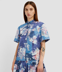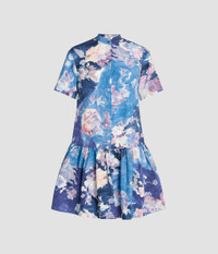 Fitted through the body and flaring to a peplum hem, this mini dress is made from cobalt cotton poplin that is decorated with a floral design. - Fit and flare silhouette - Unlined - Mini length - Stand collar - Short sleeves - Flared hem - Centre front concealed button-fastening placket - Product code: PF25_D50_50024002 Fits true to size.Model is 5'10" (178cm) and wears a size UK 8. Fabric and Care 100% Organic Cotton. Dry clean.