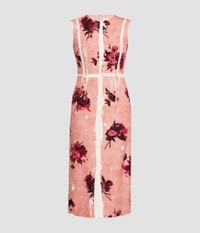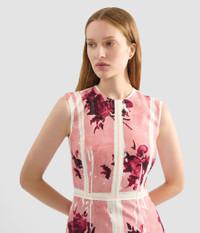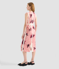 Crafted from lightweight tailoring fabric, this pencil dress is overprinted with a pink paint effect and abstract rose bouquets. - Pencil silhouette - Fully lined - Midi length - Crew neck - Sleeveless - Centre back vent - Centre back hook, eye, and concealed zip fastenings - Product code: AW25_D924_70055005 Fits true to size. Fabric and Care 100% Viscose. Lining: 73% Acetate, 27% Silk.