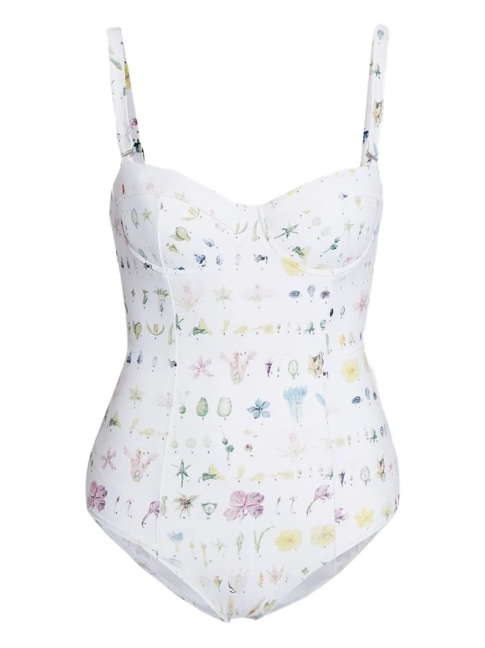 floral-print swimsuit Highlights - White - All-over floral print - Sleeveless - Be mindful to try on swimwear over your own garments. Made in Italy Composition Outer: Polyester 82%, Elastane 18% Lining: Polyamide 73%, Elastane 27%