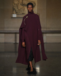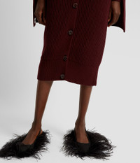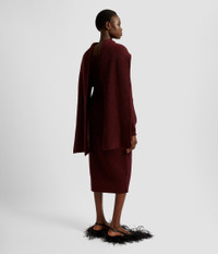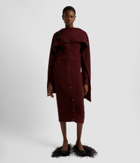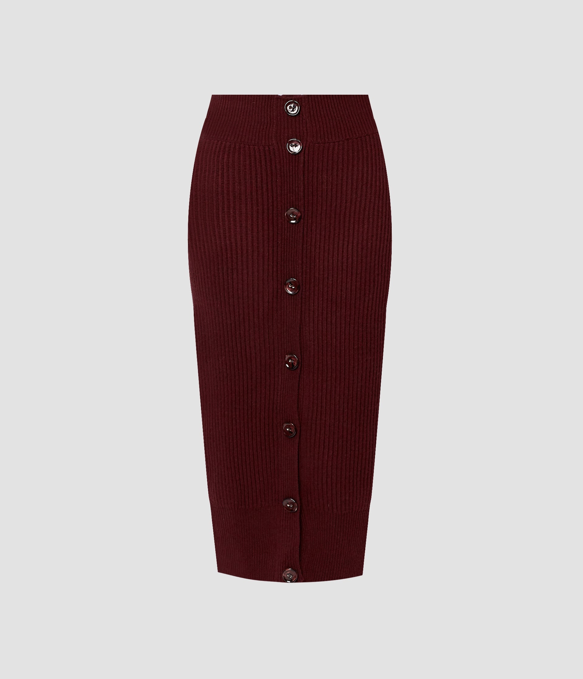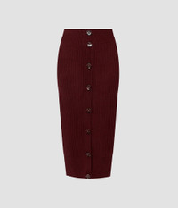This chunky, fisherman rib-knit skirt is spun from a cashmere and merino wool blend in a rich elderberry hue. It shapes a fitted silhouette and is detailed with hand-painted, twice-glazed ceramic buttons running through the centre front. Wear it with the matching hybrid scarf. Size and Fit Model is 5'10" and wears a size UK 6. Fabric and Care 70% Wool, 30% Cashmere. Do Not Machine Wash / Delicate Dry Clean / Do Not Bleach / Do Not Tumble Dry / Cool Iron On Reverse.