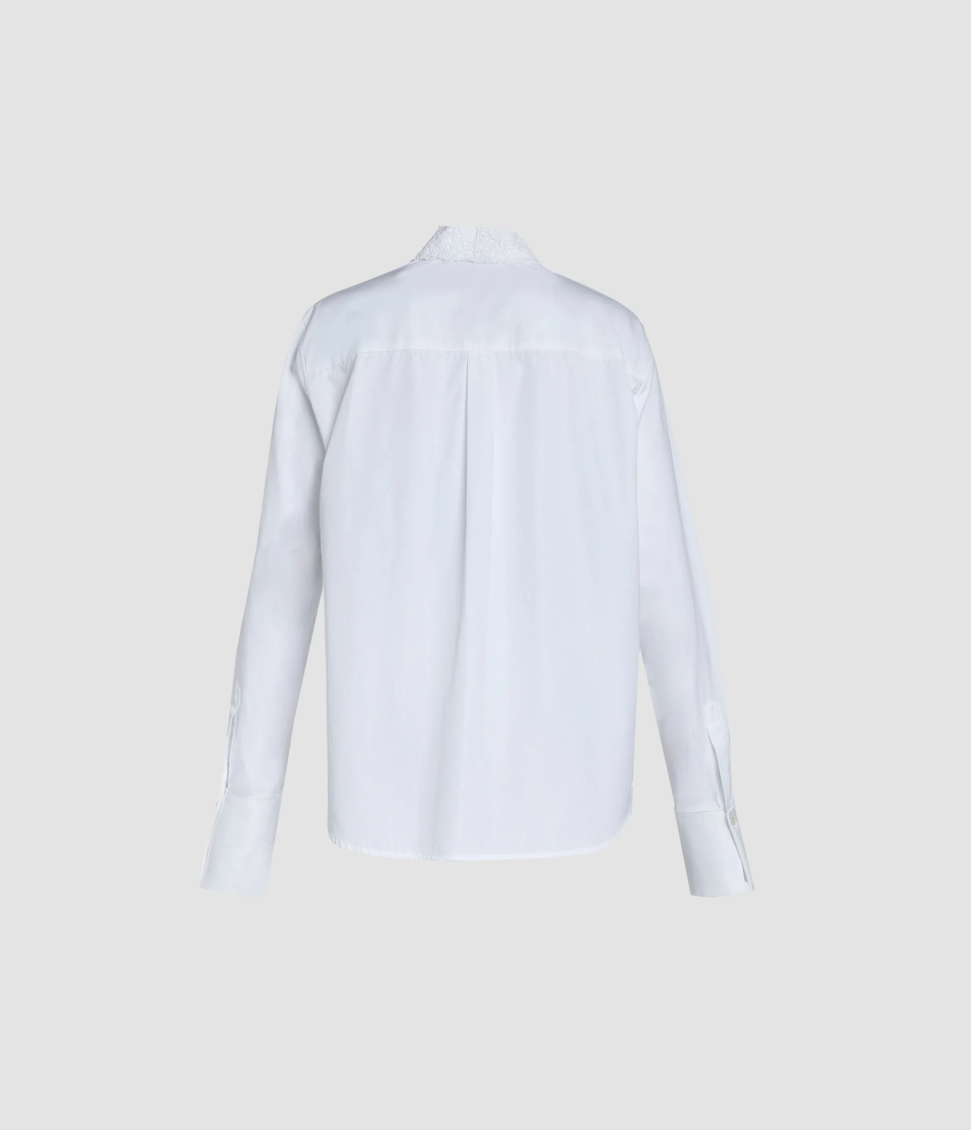 Cut from lightweight cotton poplin, this straight-fit white shirt is accented with lace appliques at the collar and cuffs. - Straight fit - Unlined - Shirt collar - Long sleeves with button-fastening cuffs - Centre front button fastenings - Lace collar and cuffs - Product code: SS26_T905_40039000A Fits true to size. Relaxed fit. Fabric and Care 100% Cotton. Dry clean.