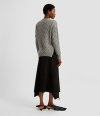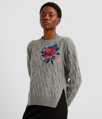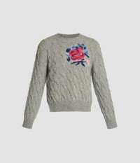 Shaped for a classic fit, this grey wool jumper showcases a cable knit design. It is detailed with a needle felt flower at the chest. - Classic silhouette - Dense cable knit - Crew neck - Long sleeves - Ribbed cuffs and hem - Needle Felt Flower Detail - Product code: PF25_KT24_30021003 Fits true to size. Fabric and Care 80% Wool, 20% Polyamide. Dry clean.