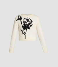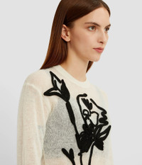 This lightweight sweater is spun from an ivory alpaca blend. It is decorated with contrasting black merino tape, appliqued in the shape of a flower. - Fitted silhouette - Lightweight knit - Crew neck - Drop shoulder - Long sleeves - Product code: PF25_KT16_30039002 Fits true to size.Model is 5'10" (178cm) and wears a size UK S. Fabric and Care 41% Nylon, 38% Alpaca, 21% Wool. Embroidery: 100% Wool. Dry clean.