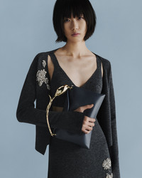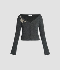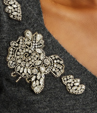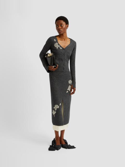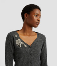 With a deep V-neck and long, split-cuff sleeves, this grey cardigan is embroidered with outlines of flowers and embellished with crystals. - Fitted silhouette - Lightweight knit - Deep V-neck - Centre front button fastenings - Long sleeves with split cuffs - Crystal embroidery - Product code: PF25_KT18_30011004 Fits true to size. Fabric and Care 59% Polyester, 23% Viscose, 10% Wool Merino, 5% Cashmere, 3% Elastane. Embroidery: 40%, Brass, 40% Glass, 20% Nylon. Dry clean.