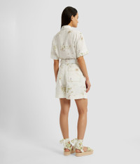 These high-rise shorts are shaped for an A-line silhouette and have centre-front pleats. The white denim is printed with botanical illustrations. A-line silhouette Partially lined High rise waist Front slash and back patch pockets Button and zip fly. Fastening Belt loops Product Code: VC25_DETR3_WSBD Fits true to size. Model is 5'8½ (174cm) and wears size UK 6. Fabric and Care 100% Cotton. Lining: 100% Cotton. Dry clean.