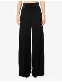 PRODUCT DETAILS - Erdem wool trousers - 100% virgin wool; contrast 78% silk, 22% polyester; lining 65% polyester, 35% cotton; trims 100% cotton - Concealed button, hook-and-eye and zip-fly fastening at front - Relaxed fit, high-rise, wide leg, belt loops, double satin waistband, two slip po0ckets at front, two jetted pockets at back, textured - Dry clean - Made in Romania - True to size - Size UK 8: rise 14in / 37cm, inside leg 35in / 89cm, leg opening 26in / 66cm - Model is 5ft 10in/1.78m and wears a size UK 8 - Lightweight, stretchy Ref: R04563113