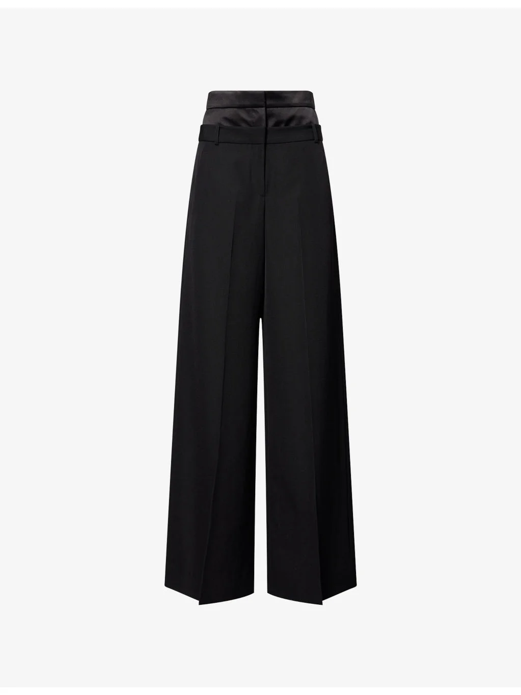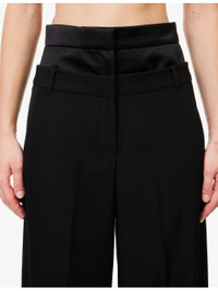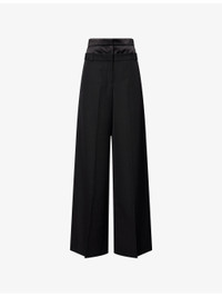 Double-Waistband Wide-Leg Wool Trousers